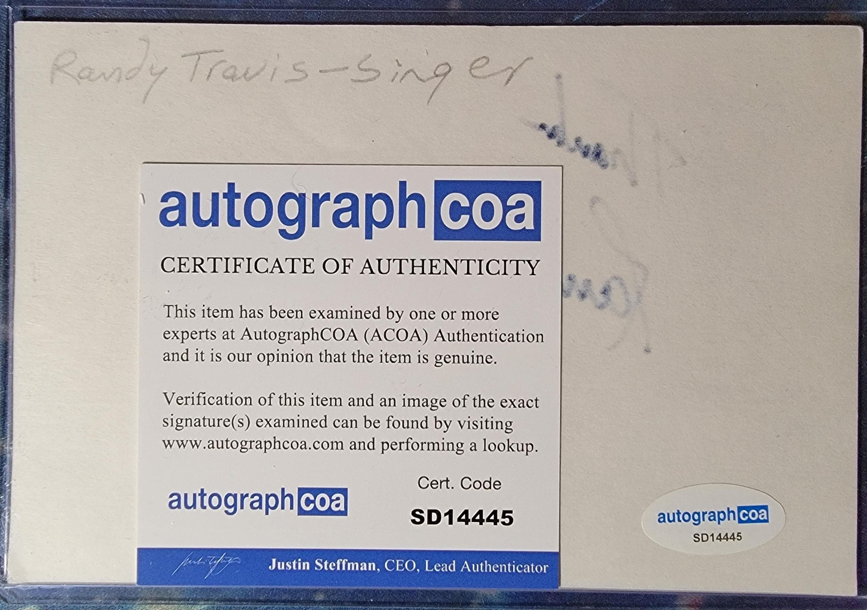 Randy Travis Authentic Signed Index Card W/ ACOA Forever And Ever, Amen