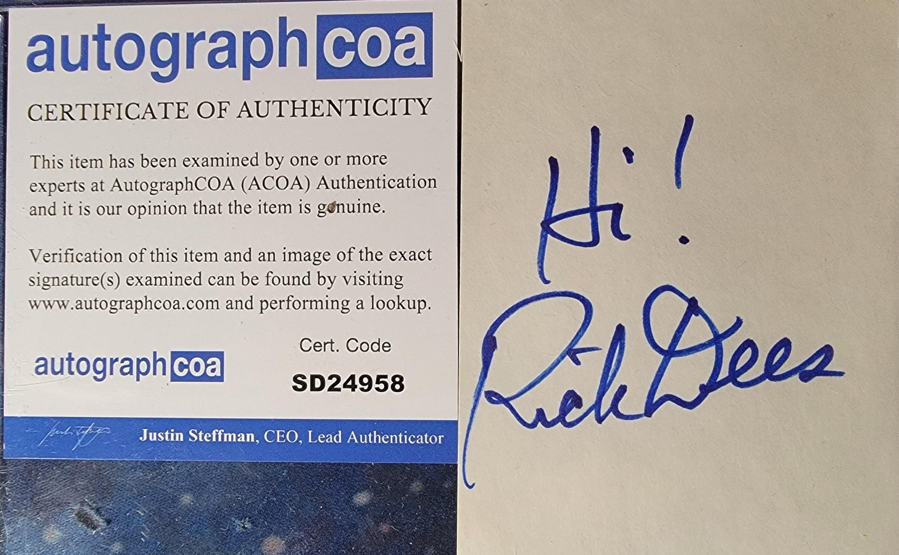 Rick Dees Authentic Signed Index Card W/ ACOA Disco Duck